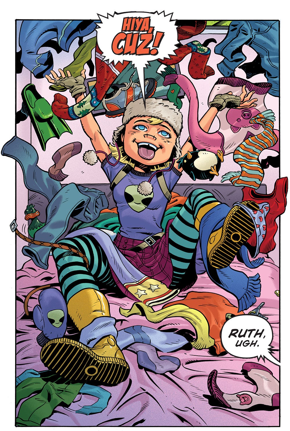 CAMILLE FORTUNATO's doting father told her there was a surprise waiting for her upstairs. Surprise! Her bedroom's been trashed.Oh wow, that’s RUTH ŽUKAUSKAS! She's Y!TM feature writer Carina Žukauskas' daughter. Remember? No? Here, this'll jog your memory:THE UNBELIEVABLE RUTH © Mark Ricketts and Shane White
